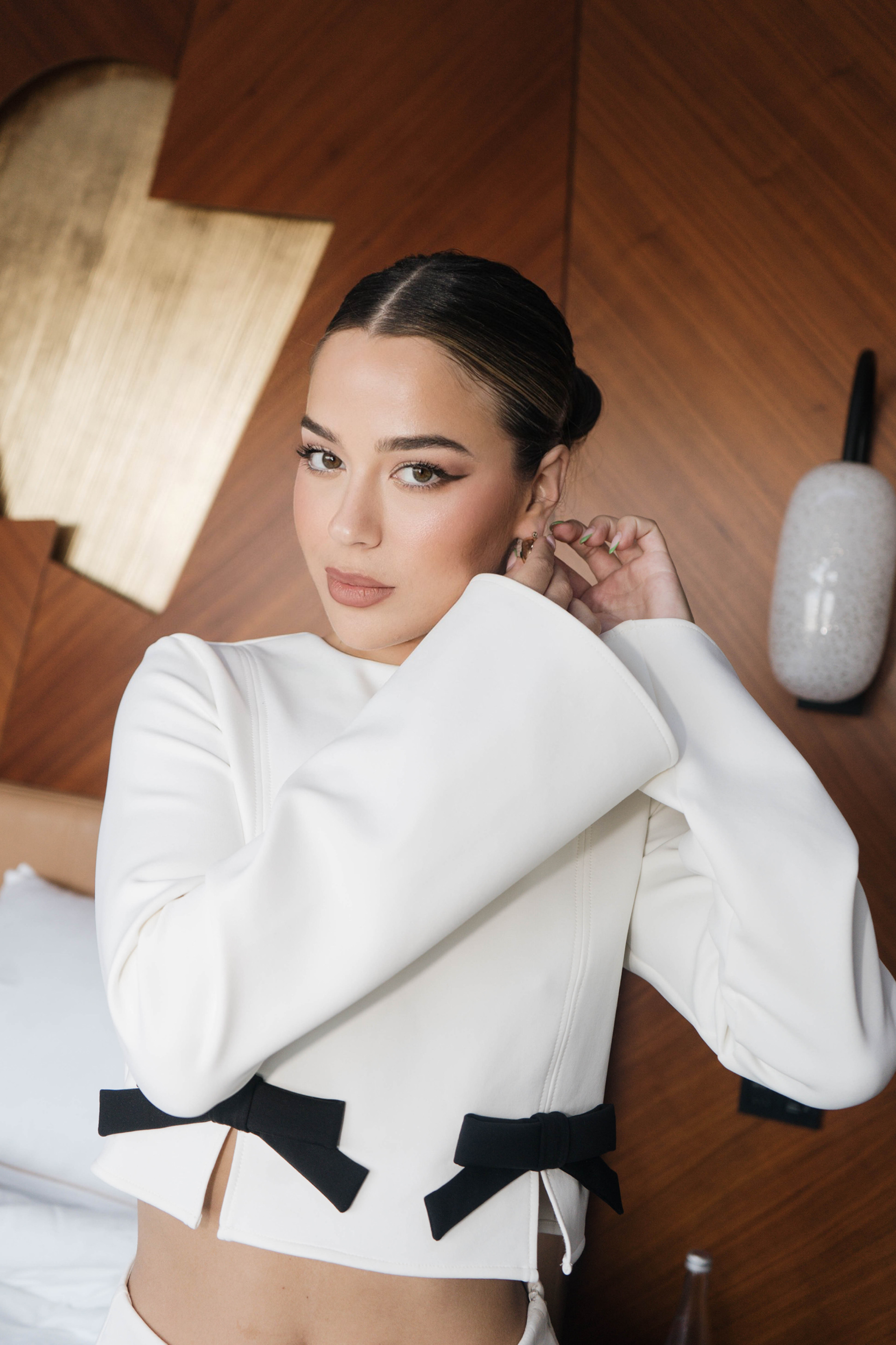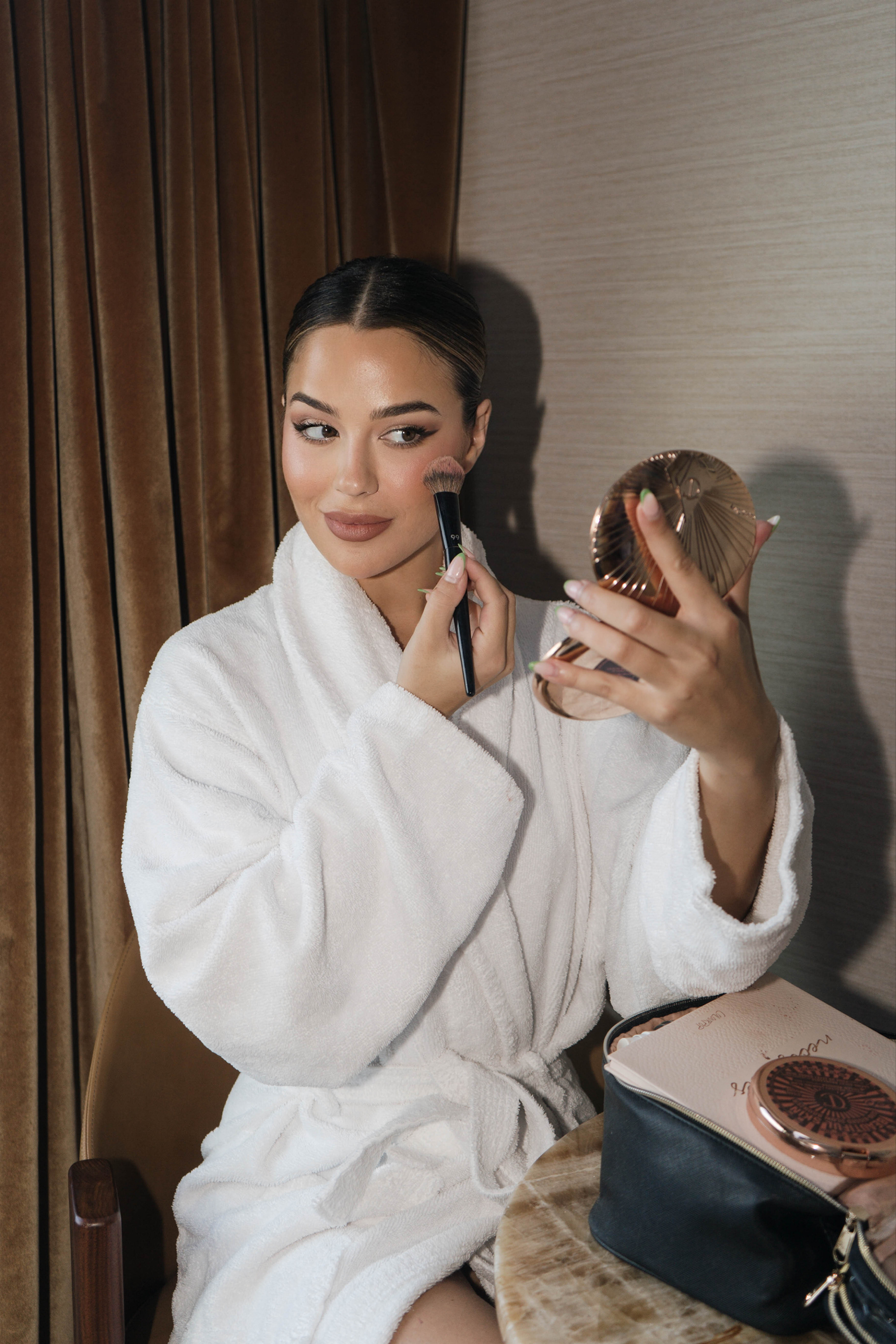 Tessa Brooks getting ready for the Viktor & Rolf show during Haute Couture Week in Paris, France.